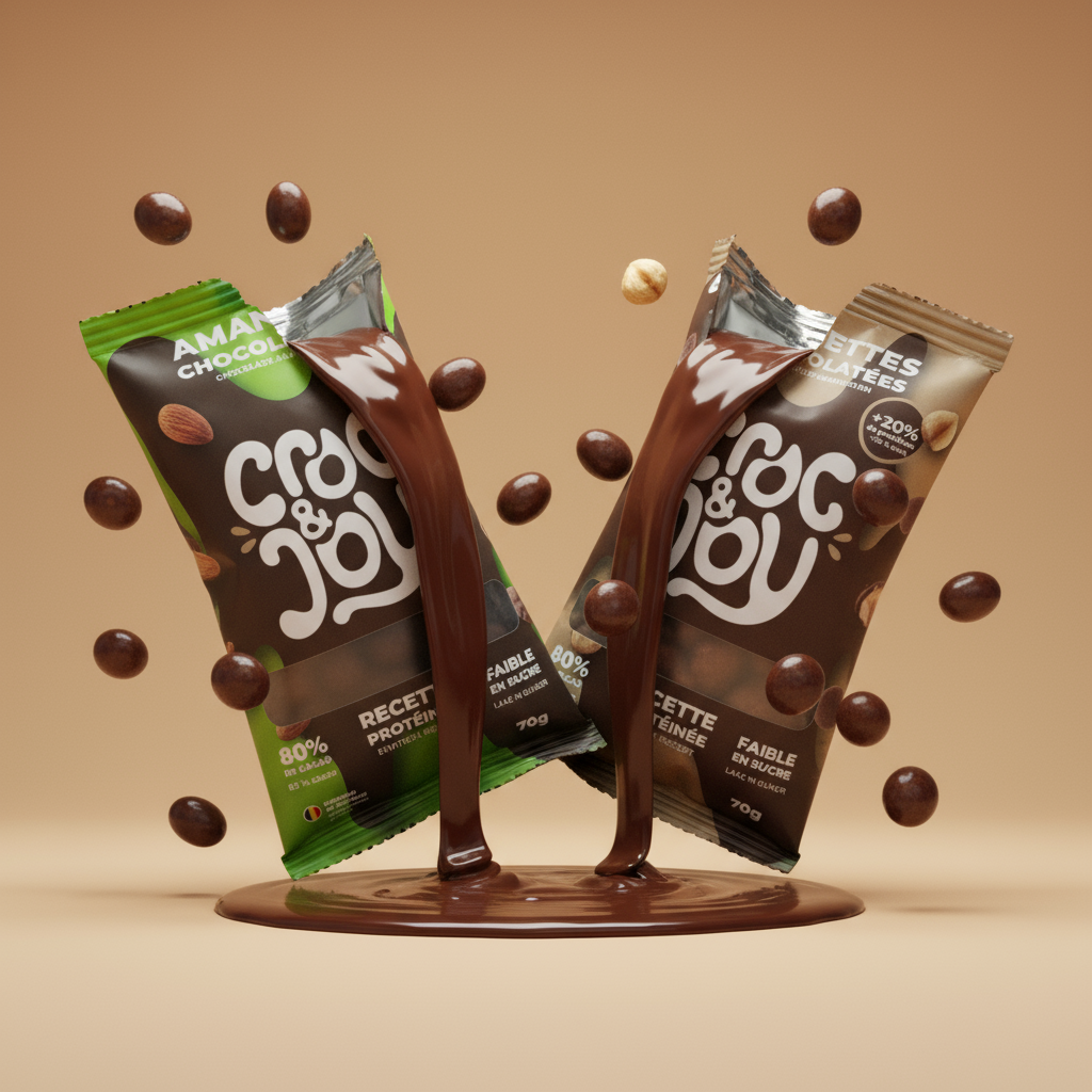 Nos snacks sont fabriqués en Belgique 🇧🇪, avec des ingrédients soigneusement sélectionnés et un vrai savoir-faire chocolatier.